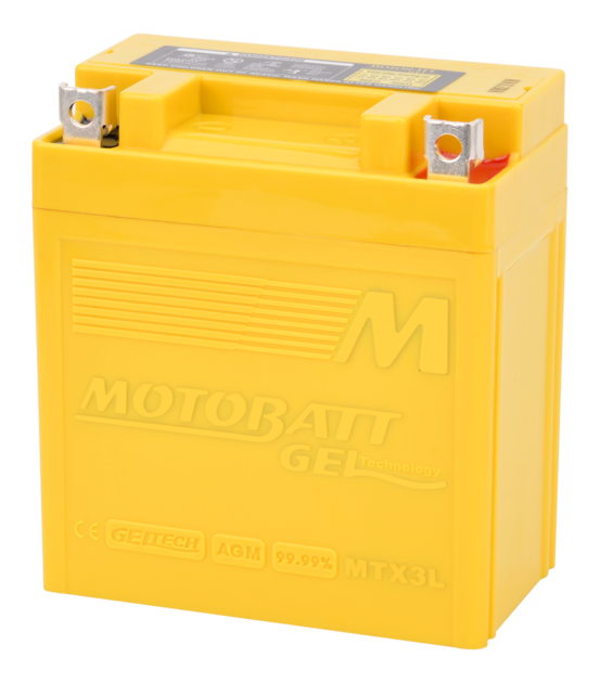 A modern gel battery is a VRLA battery with a gelified electrolyte; the sulfuric acid is mixed with fumed silica, which makes the resulting mass gel-like and immobile. Gel batteries are recommended for daily use in hot climates, Motobatt directly imports the Gel from Germany, to obtain the best performance, more power and up to + 50% life cycles. These types of batteries are also completely safe against liquid spills and more resistant to vibrations.